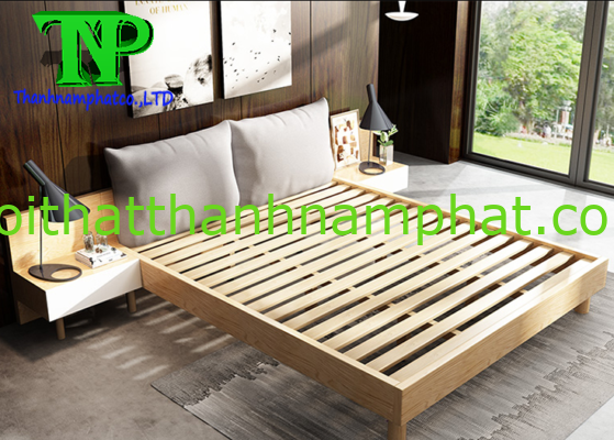 Giường ngủ K&N Có kết cấu phần chân giường được sử gỗ sồi tự nhiên.